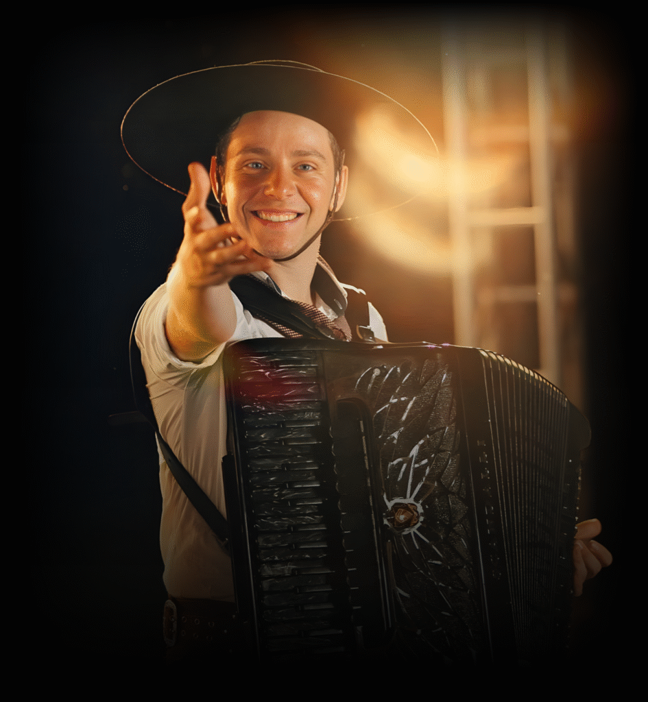 Morando e tocando hoje na EUROPA, se dedica incansavelmente pra ensinar novos gaiteiros e levar essa tradição para o mundo afora!